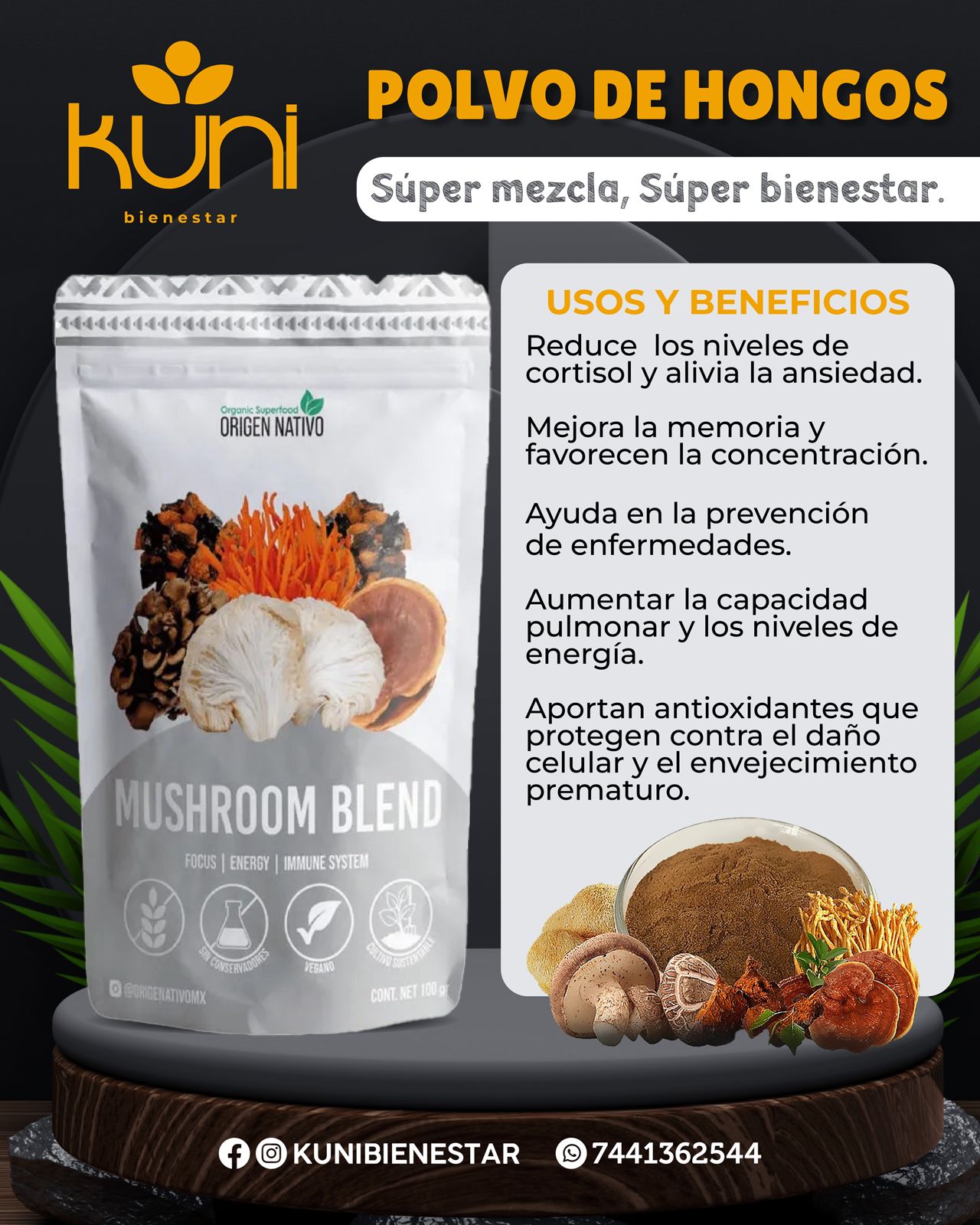 potenciar la salud general, ofreciendo efectos sinérgicos para fortalecer el sistema inmunológico, reducir el estrés, aumentar la energía y la claridad mental, mejorar la salud intestinal y proporcionar nutrientes
